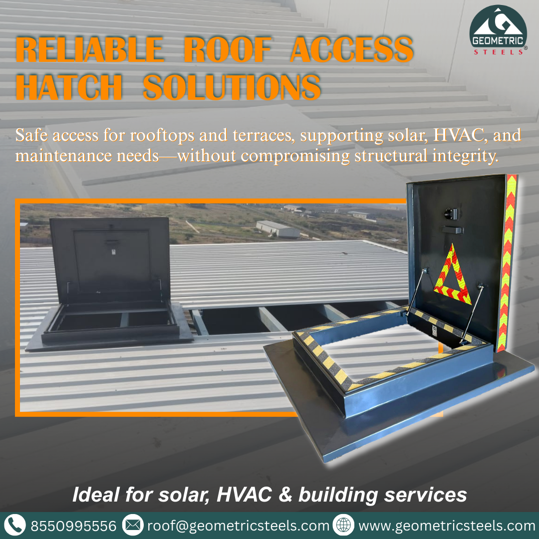 roof access hatch, roof access hatch manufacturer, roof access solutions, terrace access hatch, rooftop access hatch, industrial roof access hatch, commercial roof access hatch, solar roof access, HVAC roof access, building maintenance access hatch, safe roof access systems, Geometric Steels